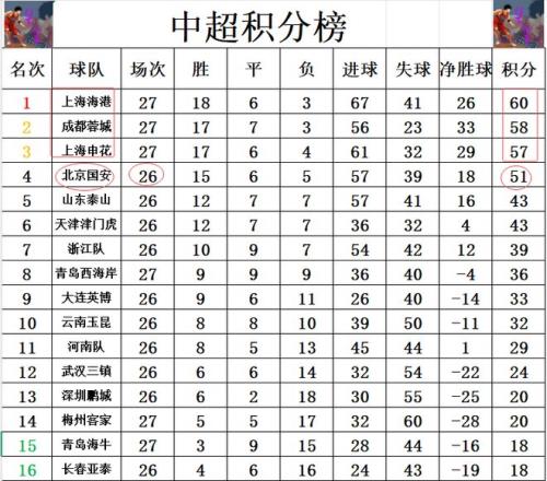 积分榜方面,榜首三强昨晚齐齐赢球,这样的话本轮争冠形势基本没有变化,上海海港还是领先成都蓉城2分,多第3的上海申花3分。虽然榜首三强相互间差距没有变化,但是他们的赢球恐怕就让第4的北京国安绝望了,国安现在少赛一场落后上海海港9分,少成都蓉城7分,基本上已经是无力争冠,争3都比较难。
